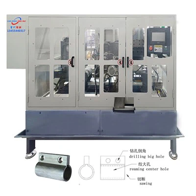 Ova mašina je dizajnirana za proces formiranja kućišta aluminijumskih cilindara. Integriše automatsko ubacivanje, bušenje urezane rupe i skošenje, urezivanje, razvrtanje centralne rupe i automatsko istovar. Mašinom upravlja PLC i HMI ekran na dodir. Jednostavan je za rukovanje, što je vrlo efikasno.